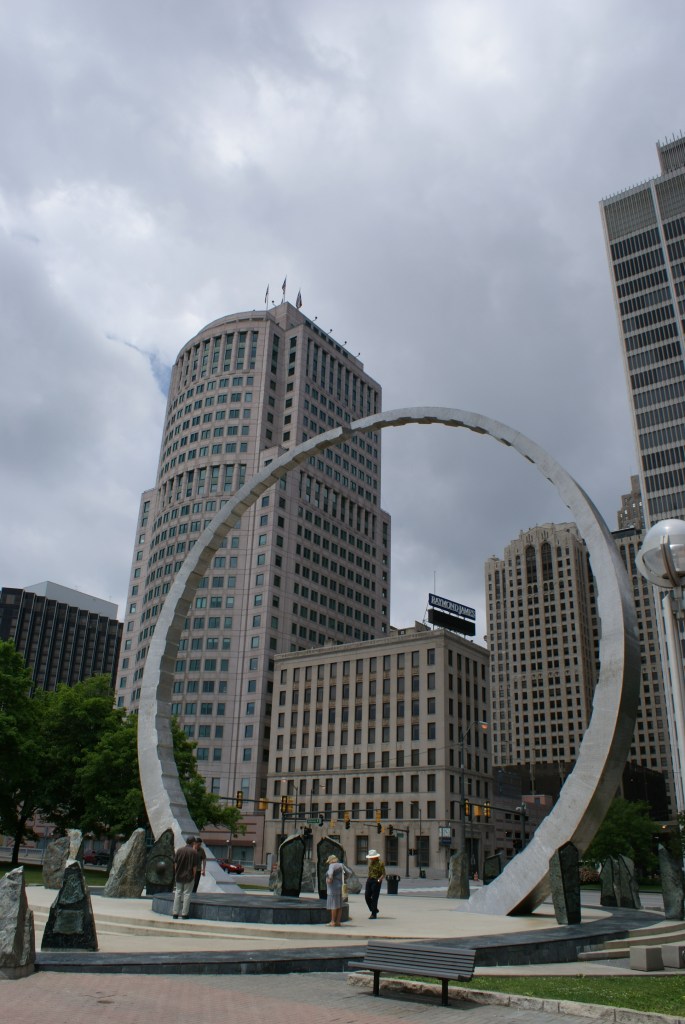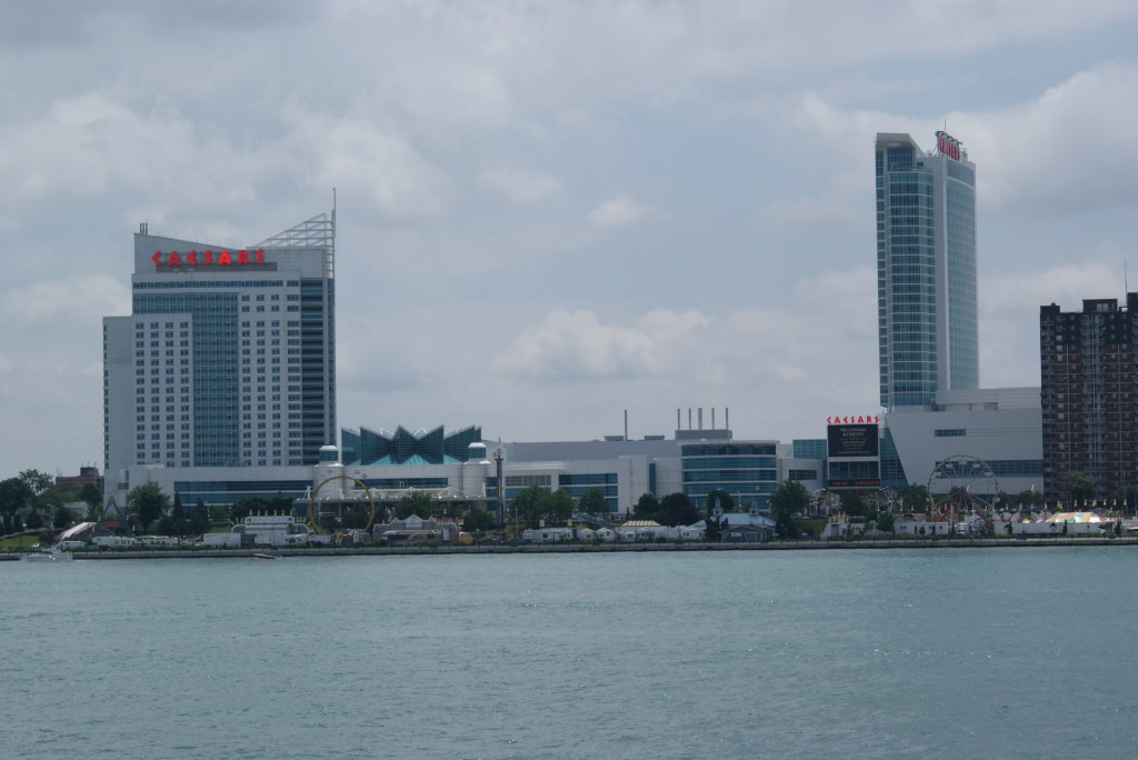 We didn’t have enough time to see a lot in the city, but we did some exploring in RenCen and walk along the riverfront promenade. Architecture is absolutely fascinating, and I can feel the power of modern buildings. Needless to say, we took lots of pictures of Detroit and Windsor skylines from both sides of the two countries.
