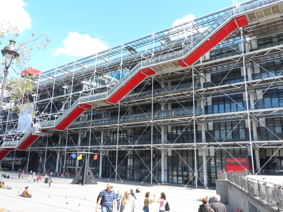 The strong color of the pipes is a prominent feature of the Pompidou Center’s architecture.