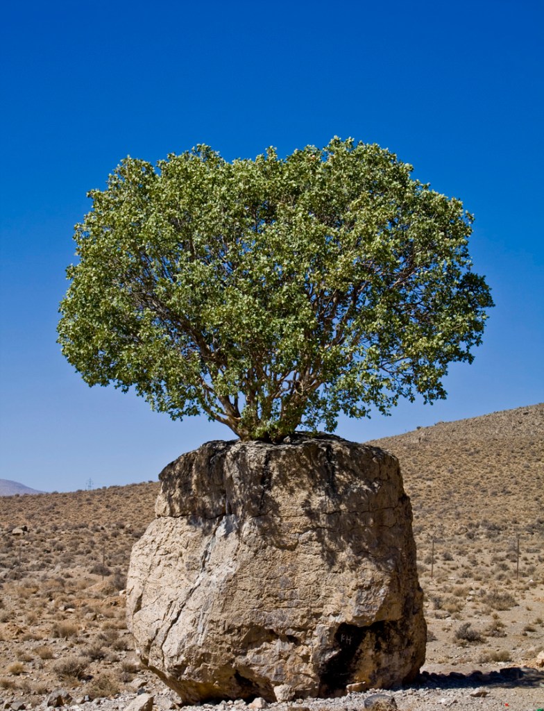 Remember to be strong, resilient, and never give up, the same as this incredible pistachio tree that surprised everyone by growing out of a huge rock in Arsanjan, Fars Province, Iran. This tree reminds us that anything is possible.